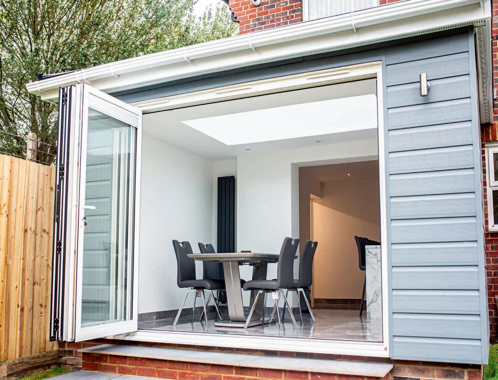 Aluminium windows, bi-folds, and sliding doors now account for 28 percent of the UK home improvement market, reflecting a growing consumer preference for the material’s slimline designs and durability. In response, John Fredericks offers a comprehensive range of highperformance aluminium solutions, including the Panorama SuperSlim series, featuring ultra-slim frames that maximise natural light while providing a sleek, contemporary aesthetic. The company’s aluminium range encompasses windows,