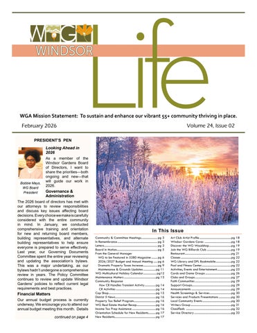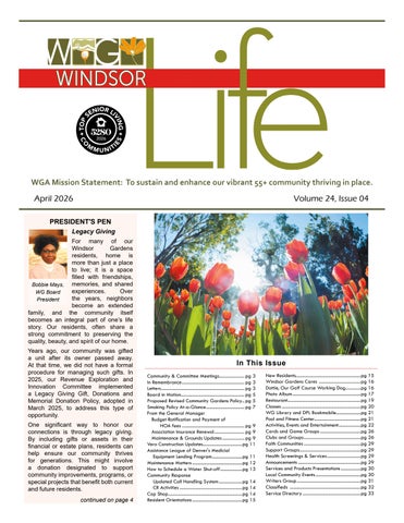 Windsor Life is published by the Windsor Gardens Association Board of Directors for the benefit of Windsor Gardens residents and is dedicated to: fostering communication and collaboration among the residents, board of directors and staff; promoting Windsor Gardens numerous and diverse activities; and informing residents of community resources and issues. The Windsor Gardens Association, its board of directors and employees and the Windsor Life staff are not responsible or liable for any of the services or products advertised in the Windsor Life publication, nor do we endorse any advertisement, product or service. The association recommends that you research any product or service and check references prior to hiring any individual or company. Windsor Life newspaper is delivered to every resident each month and there are always extra copies available in the office.