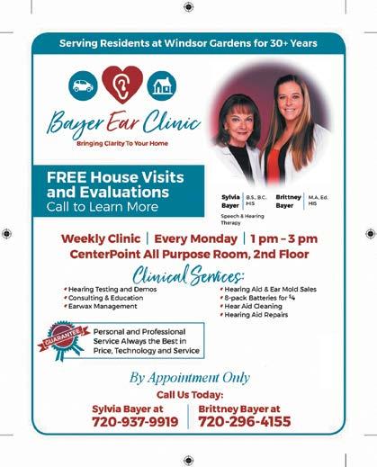See our Ad-Back Page of Windsor Life www.tourwindsorgardens.com 303-941-9436