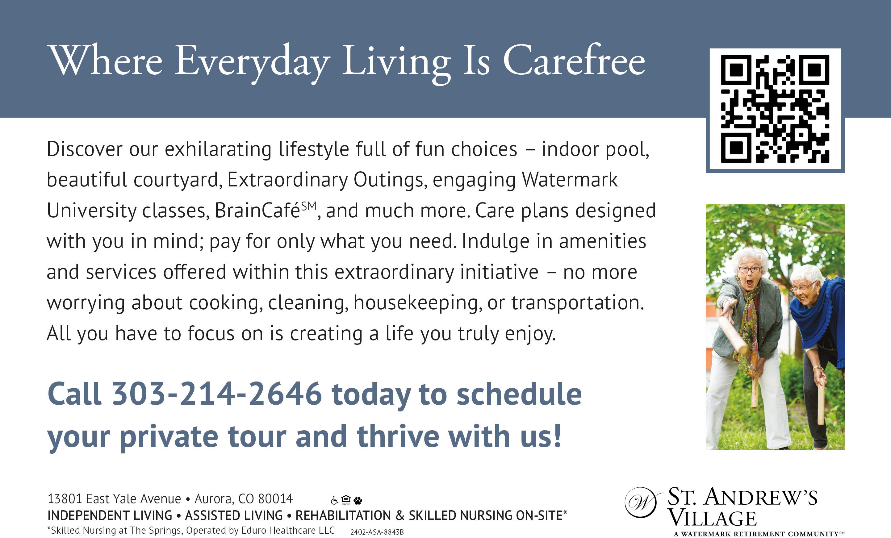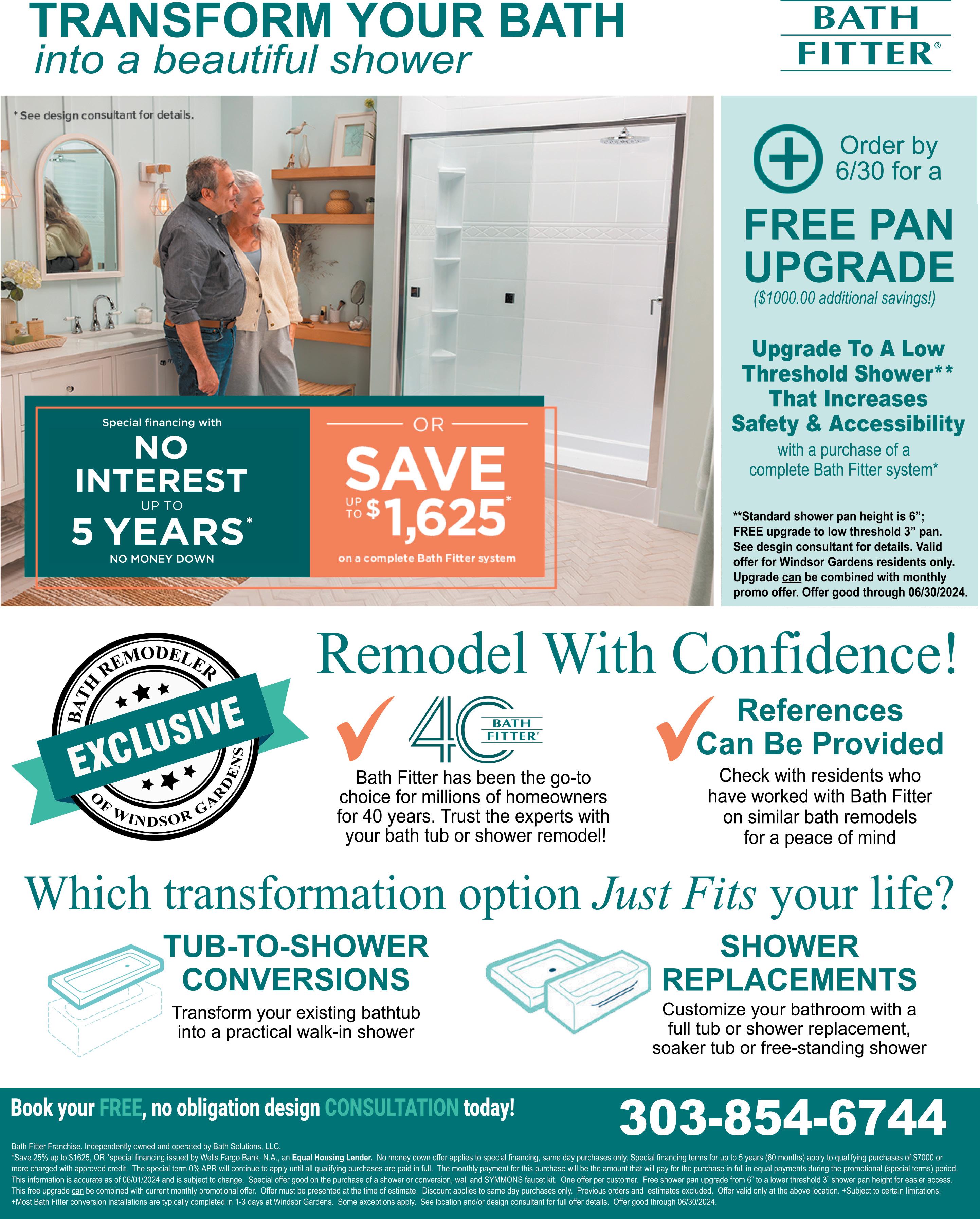 See our Ad-Back Page of Windsor Life www.tourwindsorgardens.com 303-941-9436