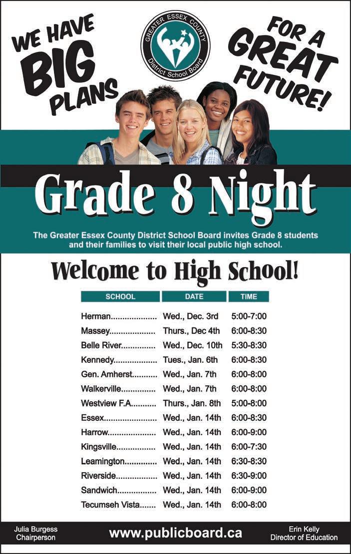 TimothyTernosky AmherstburgSouth 519-730-1343 VirenKhullar ForestGlade 519-739-9583 KyleStevenson TecumsehWest 519-739-3603 DeanDoster St.ClairBeach 519-979-5555 MarkSzarek Leamington 519-324-0144 BinhThoaiTruong LaSalleEast 519-966-5046 DaveFreeman CabanaNearHoward 519-967-0084 StevenKidd LaSalle 519-734-8599 BobSimpson Blenheim 519-676-0870 MatthewSears WindsorSt.Rose 519-945-6165 GregDavenport Chatham 519-351-1022 DonHarris LaSalleCentre 519-969-3825 TheresaKing BelleRiver 519-727-1041 ChrisHorovenko EastWindsor 519-944-2971 CharlesSarkis WindsorCentre 519-974-4480 DianeSanting TecumsehCentre 519-979-7334 SeanHunt SouthWindsor 519-972-6389 JohnAtkinson RiversideEast 519-944-9080 NormBezaire Windsor 519-969-1419 LouAnneBogl St.ClairBeach 519-979-5555 YourEdwardJonesFinancialAdvisorsare(l-r): Season’sGreetings Duringthisholidayseasonandeverydayof the year,wewishyouallthebest. Member-Canadian InvestorProtectionFund MKT-1232A-C www.edwardjones.com