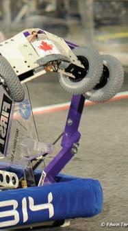 TheveteranSabreBytesteam,comprised ofmechanical,electrical,programming, publicrelationsandcommunicationsunits, hasbeensteadilybuildingonitsskills.“We haveaprocess,”Leesays.Beforeanybuildingisbegun,theteaminitiallyfiguresout howtoplaythegame.Thentheybrainstorm,applyingwhattheyhavelearnedin schoolandknow-howgleanedfrommentorsandexperts.Finally,therobot,weighing asmuchas150pounds,isconstructedfrom acommonkitofpartsprovidedbyFIRST. Everythingisdonewithinsixweeks,in accordancewithFIRSTregulations.Once thetimeisup,thetoolsaredowned.“The rulesstateyoucan’ttouchyourrobotin betweenco mpetitions,”Leeexplains.Followingeachcompetition,qualifyingrobots arebaggedandsealedtillthenextgame.