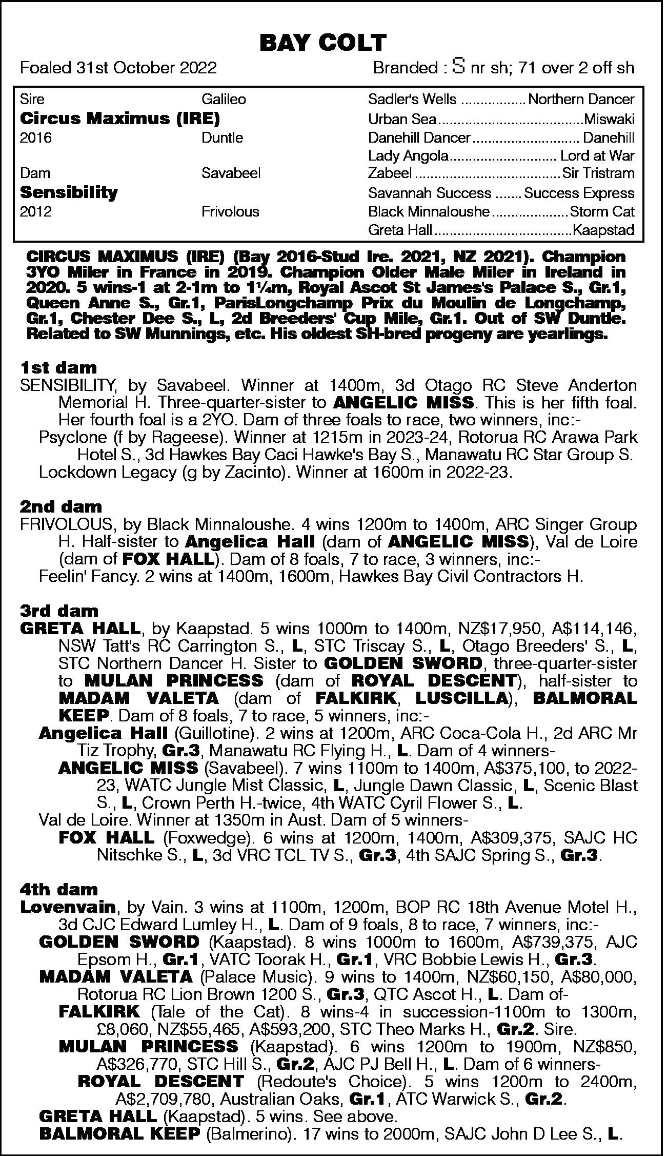 • NZ’s Leading Third Crop Sire in Australasia for GW/SW 2023