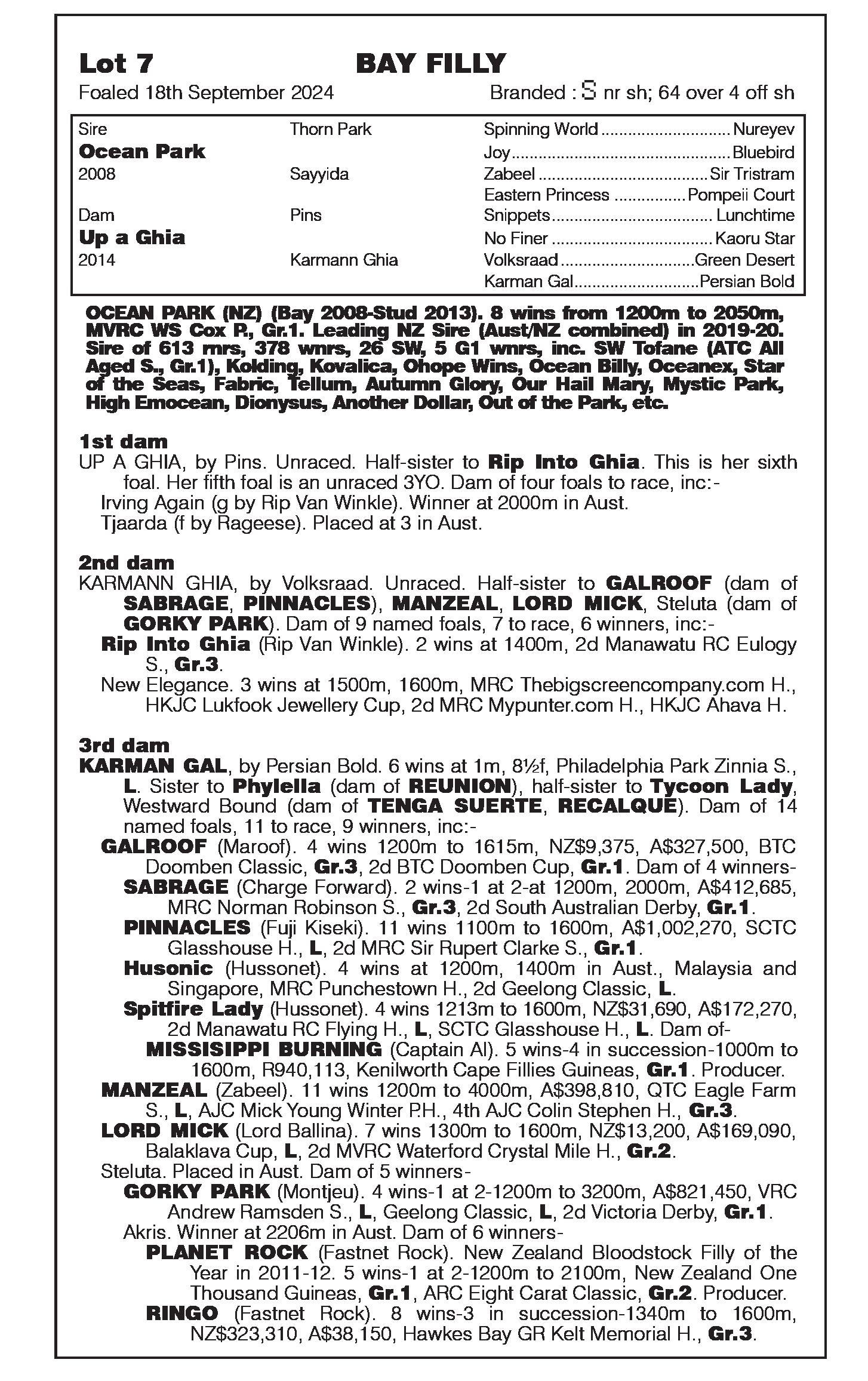 • Out of a half-sister to black type performer RIP INTO GHIA and from the family of GALROOF, SABRAGE and PINNACLES etc