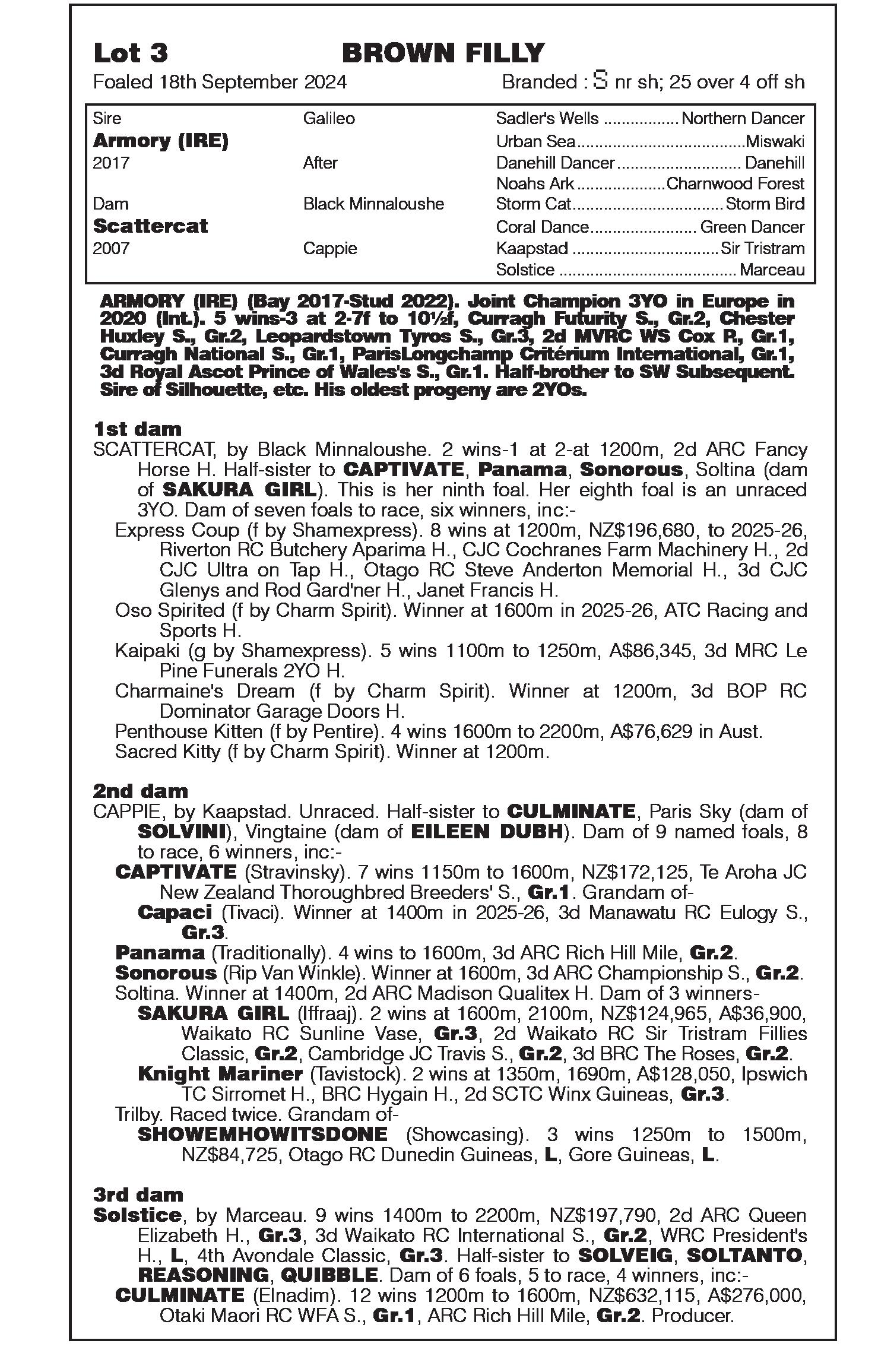 • $3.5M Kiwi eligibility: All yearlings in this sale are eligible for the 2028 NZ Kiwi $3,500,000 slot race for 3YOs run over 1500m at Ellerslie