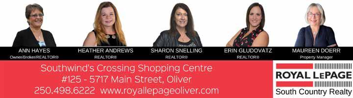Carol Sheridan • Parks & Recreation Manager • carol@oliverrecreation.ca