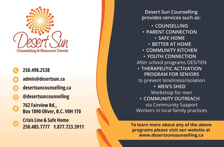 Do you have skills, energy and a little bit of time to offer your community? There are many rewarding and fun ways to volunteer with Oliver Parks and Recreation, including Special Events, Early Dismissal Day Programs and Day Camps. Please call to find out more information from the Recreation Supervisor, katie@ oliverrecreation.ca and please head to our website to fill out a volunteer form as www.oliverrecreation.ca/forms