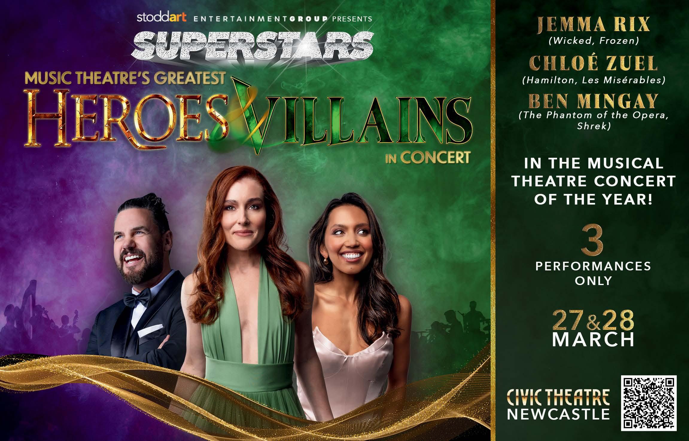 For those seeking broadway glamour, Superstars: Musical Theatre's Greatest Heroes & Villains brings Jemma Rix, Rob Mills and Nadia Komazec to the Civic Theatre for an unforgettable evening.