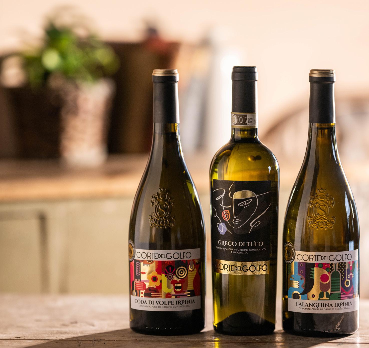 Corte del Golfo has selected three outstanding native white varieties from Campania that best represent the highest quality: Falanghina, Coda di Volpe and Greco di Tufo. Chosen by our winemakers for their fruity notes and minerality, these wines also come complete with an artistic, art deco design to their labels which accentuate the feel of a truly special wine.
