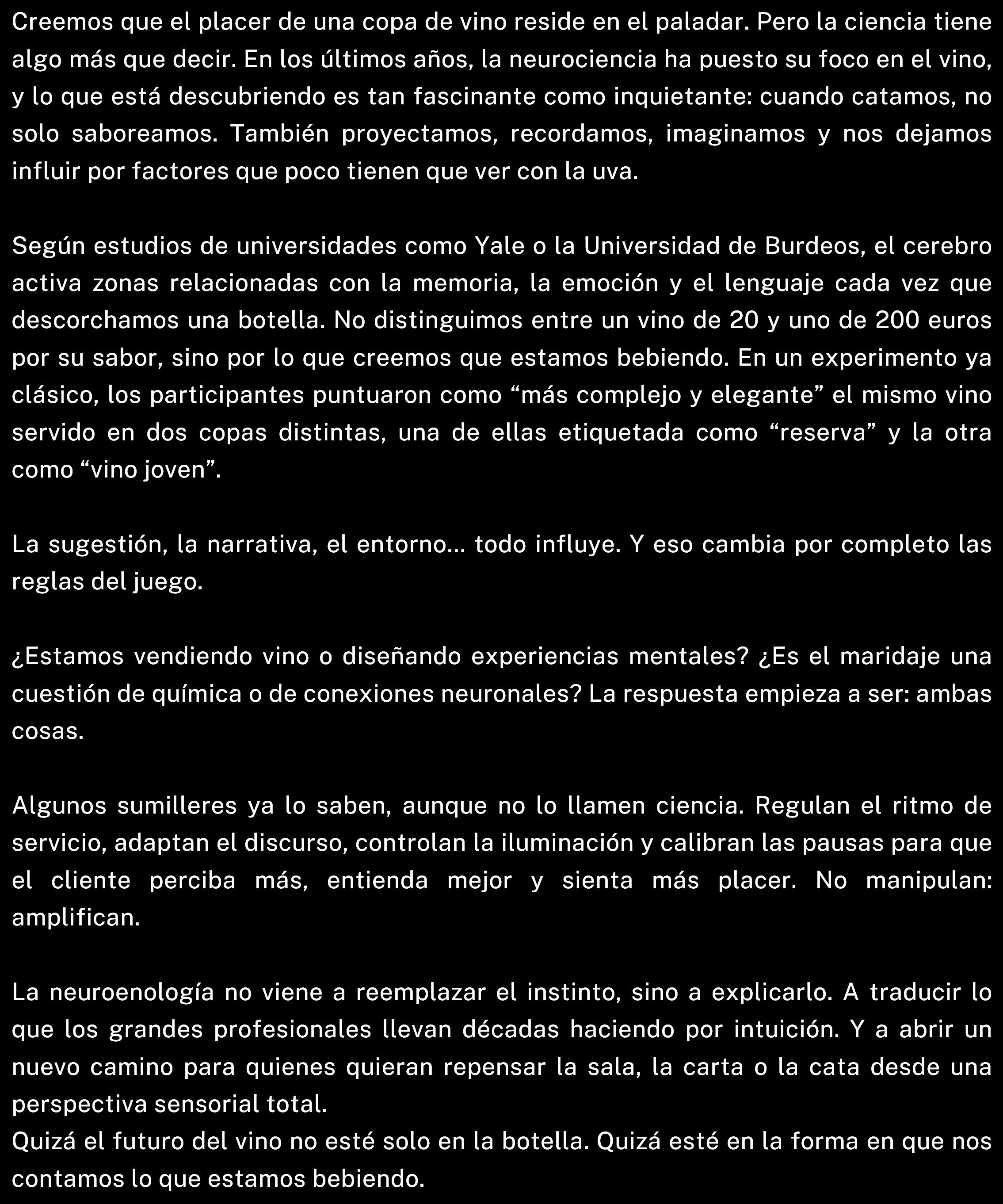 “¿UN CONSEJO? NO OS QUEDÉIS EN EL PRIMER SORBO Y PROBAD EL MISMO VINO EN MOMENTOS DISTINTOS, CON PERSONAS DIFERENTES, CON DISTINTAS COMIDAS.”