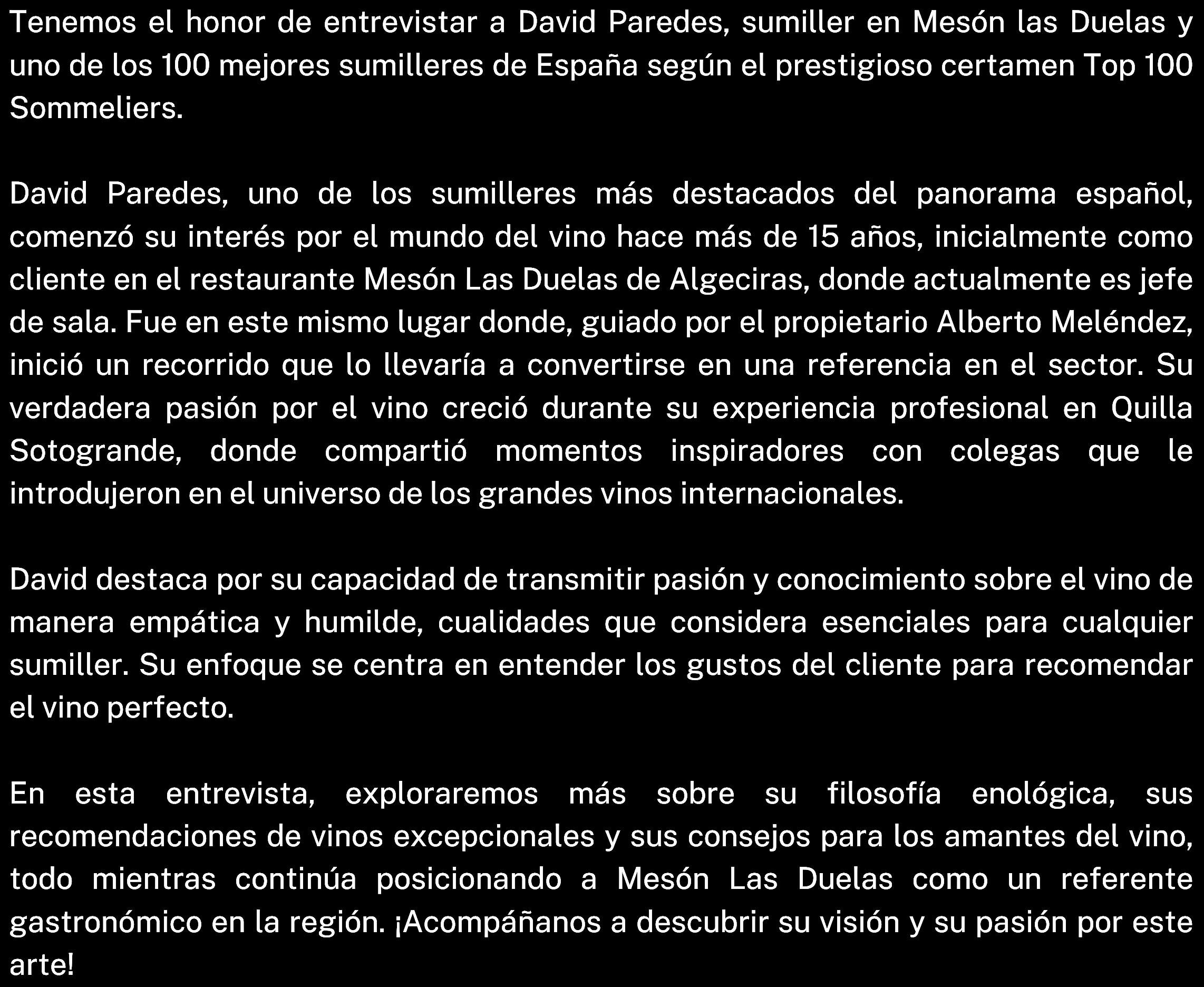 Sumiller en Mesón las Duelas y Top 100 sumilleres de España