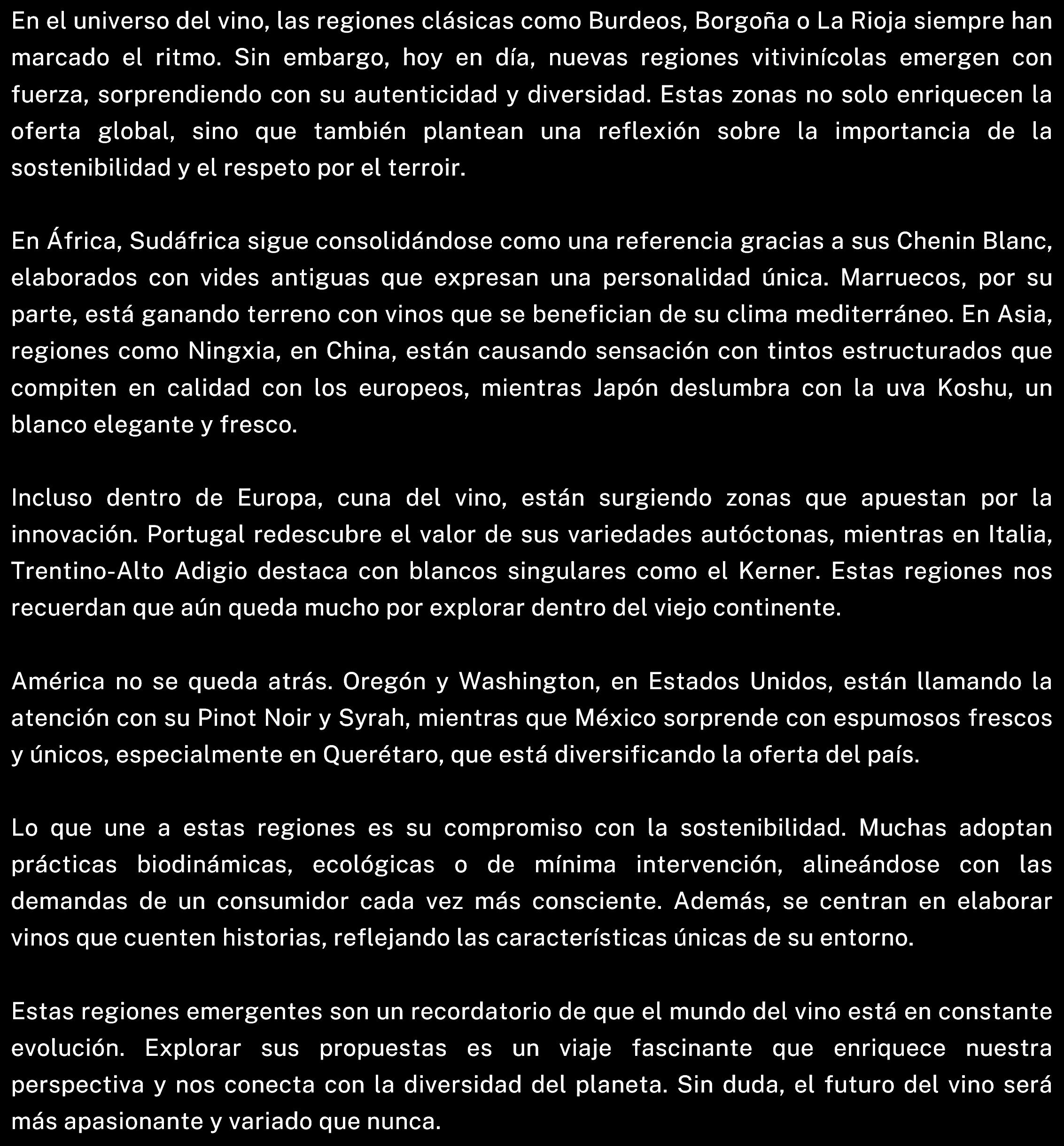 Ahora mismo pienso que está en la innovación, en el cuidado de la viña, el famoso “terroir”, en hacer algo diferente que te pueda sorprender, y contar una historia en cada vino, es lo que hace este mundo maravilloso