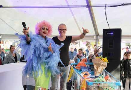 muziek door de Deventer Deurdweilers, leuke lip-syncacts van dragqueen Roxy Diamond en korte modeshows. Verder werden er de hele middag overheerlijke hapjes uitgedeeld. Van kaas tot gehaktbal, van verse vis tot gyoza’s, het publiek bleef er heerlijk van smullen.