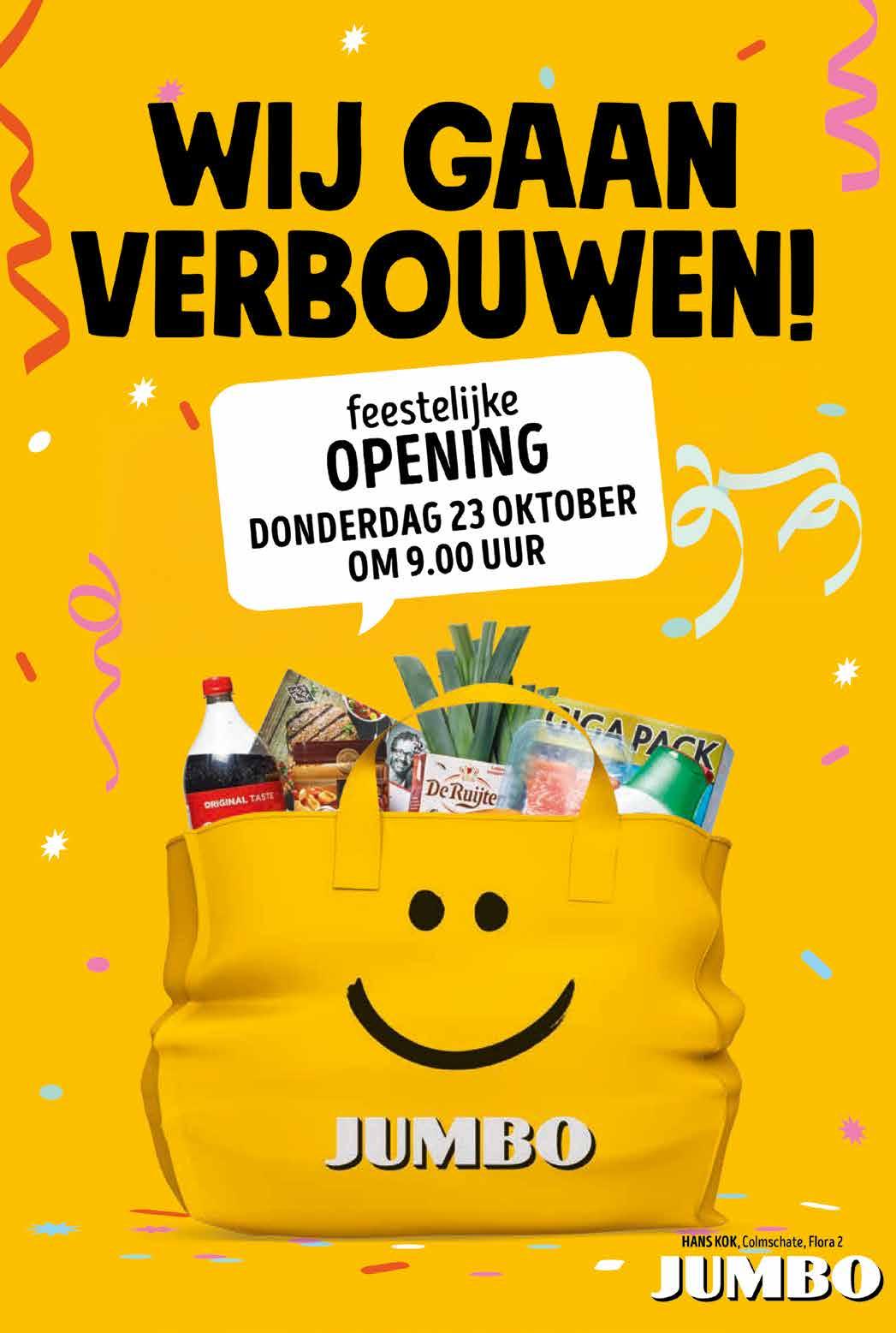 Momenteel is de Jumbo dicht. 19 Oktober jl. om 18:00 hebben zij de deuren gesloten, om vervolgens in een recordtijd van 3 dagen het filiaal te gaan verbouwen. Donderdag 23 oktober om 09:00 zullen de deuren voor het winkelend publiek weer geopend zijn. Hans Kok vertelt: ‘’De uitstraling van de winkel gaat op de schop. Zo worden de versafdelingen groter, het zelfscanplein wordt uitgebreid en de looproutes worden groter en logischer. Kortom; het voelt straks ruimer en rustiger’’.