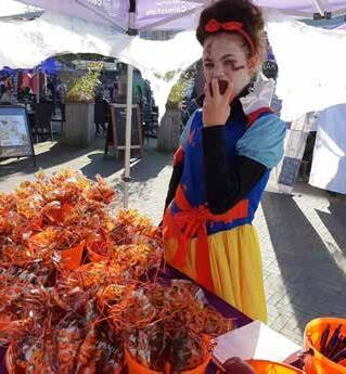 Voor de kinderen die niet winnen, of kinderen die zich liever niet verkleden is nóg een leuk wedstrijdje: de etalage-speurtocht! Haal een deelnameformulier bij de kraam en doe mee! Voor iedereen die de speurtocht volledig afrondt, ligt er een snoepzakje klaar!