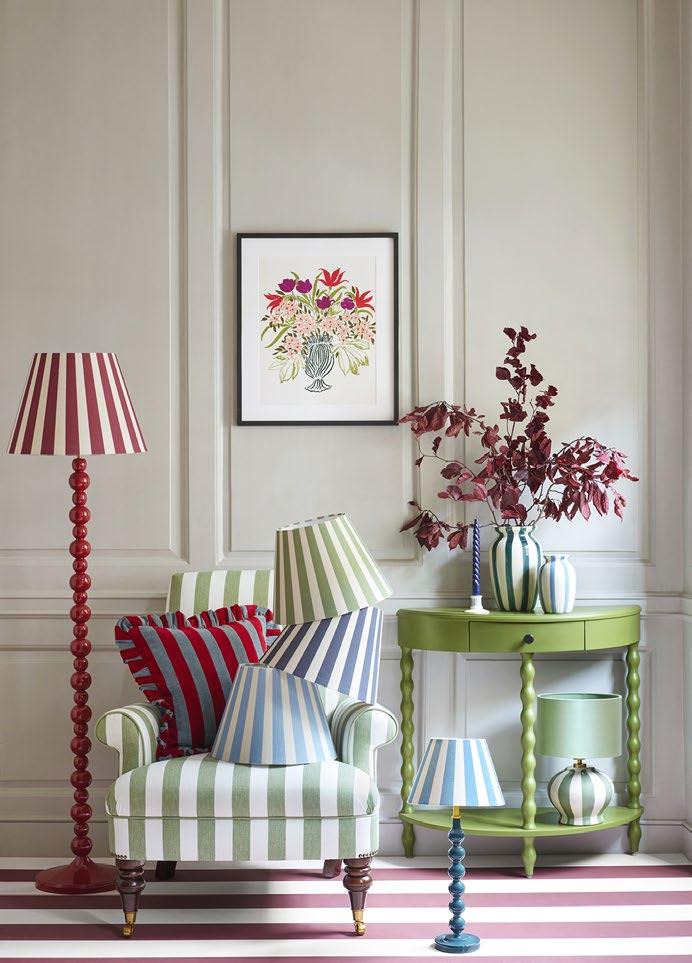 Stripes are also making a strong return, and they’re bolder than ever. Whether featured on large statement pieces or smaller accents, stripes add a lively, eye-catching element to any room. For those who prefer a more subtle touch, incorporating stripes through lampshades or hand-painted vases offers a stylish and personal way to refresh your space—these also make perfect housewarming gifts.