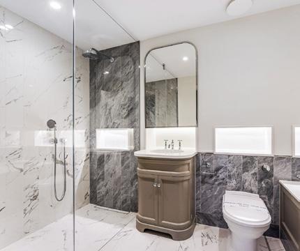 This stunning flat has been renovated to the highest standard, seamlessly combining period charm with contemporary luxury. The bright and spacious open-plan kitchen/reception room features wooden floors, modern kitchen and views over the communal gardens and quiet mews. Two large double bedrooms and a third smaller bedroom are located on the top floor, with access to two bathrooms (one en-suite) and guest cloakroom. The flat further benefits from a study on the half-landing and communal garden access (by separate arrangement). EPC: C