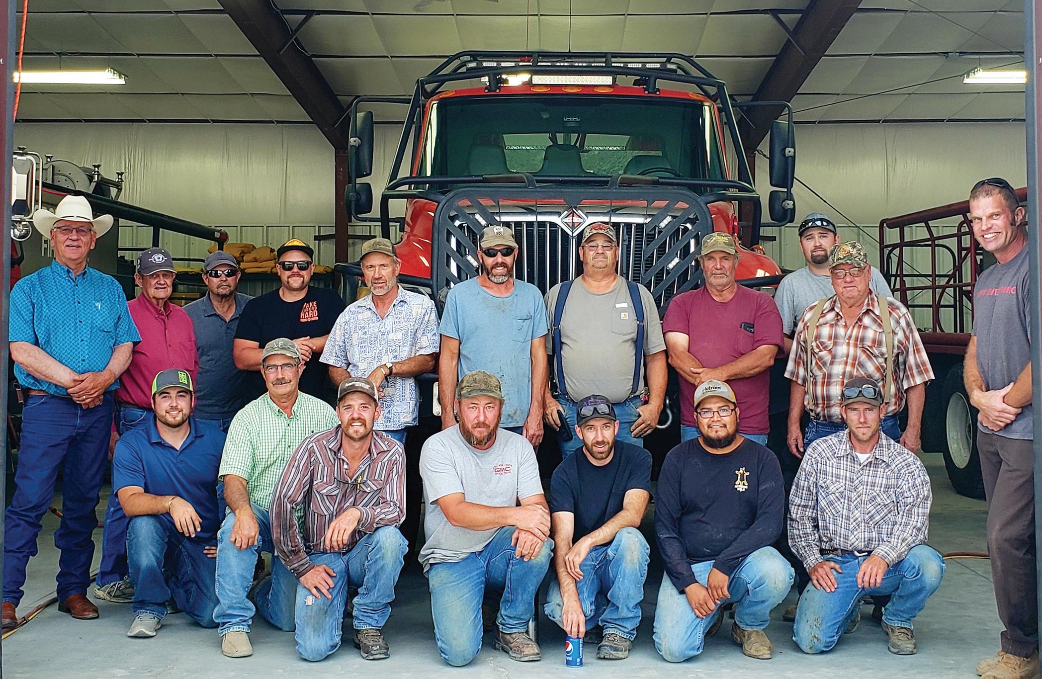 Standing, Left to Right Ron Cerri, Bob Fettic, Terry Mcclintick, Kyle Negus, Assistant Chief Don Mertens, Will Frey, Fire Chief Andy Rodriguez, Walt Wilson, Troy Rodriguez, Leon Frey, Casey Amato Front row, Left to Right Bryce Brumley, Don Brumley, Jake Ulhmann, Jess Frey, Alex Mertens, Pedro Barrera, Dusty Edwards. Not pictured: Gary Hogue, Kevin Holt, Arlow Nielsen, Clay Smith, Brian Dripps, Michael Van Der Hoek, & Dick Williams