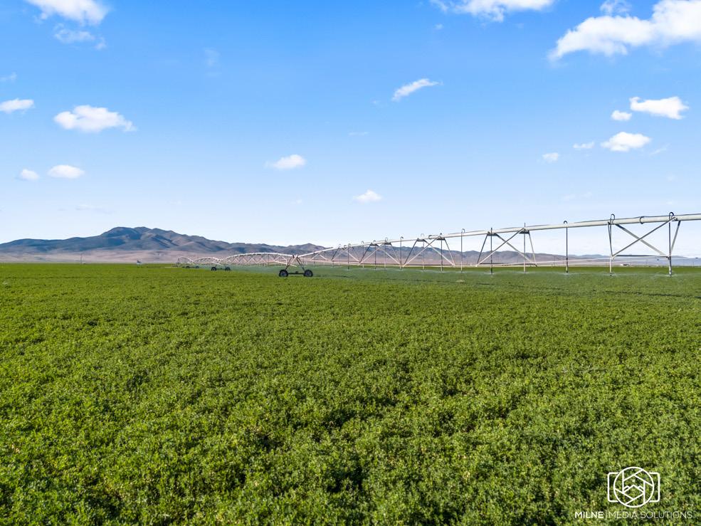 *1,075 acres *support 450-500 head of cattle & 2,500+ sheep *500,000 contiguous BLM land, AUMs for both cattle and sheep with over 1,186,411 acres with 250,725 operating acres *Two 120 acre pivots and a 60 acre pivot *diesel powered wells *50 acres gravity fed irrigation from a pond *1,000 tons of feed annually *sheep pens *home $8,000,000