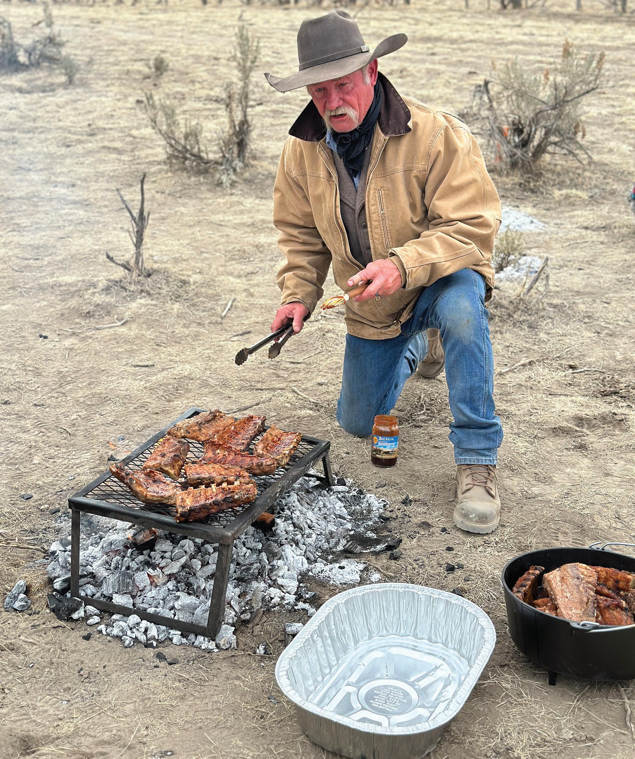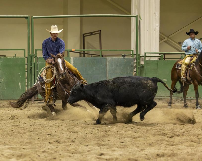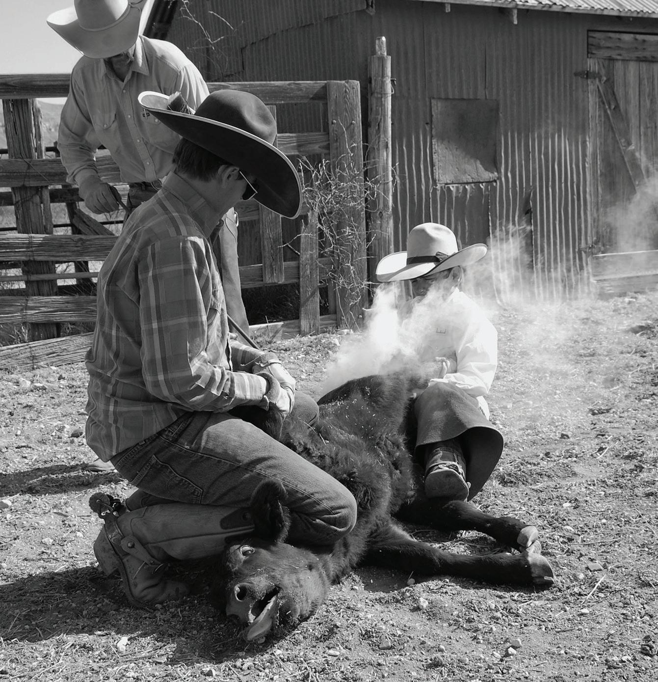 of the vaquero. Competitors are judged by experienced, working buckaroos on loop size, distance thrown, rope handling, control of the dally, horsemanship, teamwork, and overall style. Range-raised cattle are roped from the “rodear,” as three-person teams sort, rope, and lay them down for doctoring or branding.