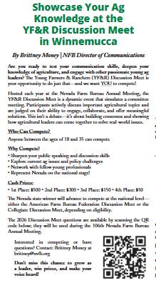 The Nevada Rancher does not assume responsibility for statements by advertisers nor products advertised within, and The Nevada Rancher does not assume responsibility for opinions expressed in articles submitted for publication. The publisher reserves the right to accept or reject advertising or editorial material submitted for publication. Contents in The Nevada Rancher may not be reproduced, in whole or in part, including, but not limited to original contents and original composition of all ads (layout and artwork) without prior written permission. Subscription rate: $16.00 per year. All content copyrighted, September 2025.