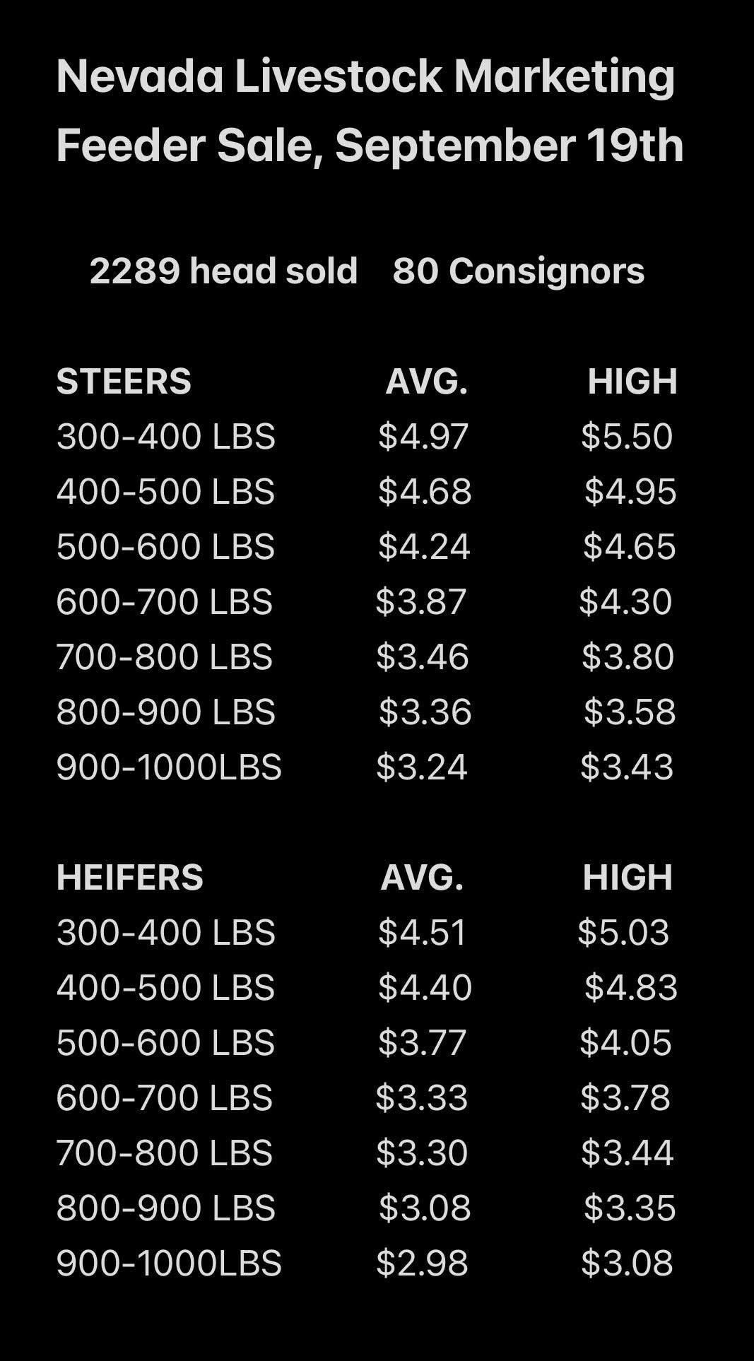 Our next feeder sale has been moved to October 24 in conjunction with USDA Secretary Brooke Rollins announcement on October 23rd at Nevada Livestock Marketing. This announcement is pending the government reopening soon. If it does NOT open soon the announcement event will be moved to a later date but the feeder sale will remain on Friday October 24th. November has 2 feeder sales, the 7th and the 21st.