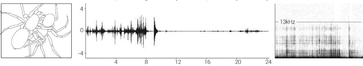 The spider communicates through the vibrations of its web, and the organs it uses to feel the vibrations are located on its legs. For example, spiders can sense the location and condition of their prey through the vibrations of the web, or defend themselves through the sounds coming from the web.