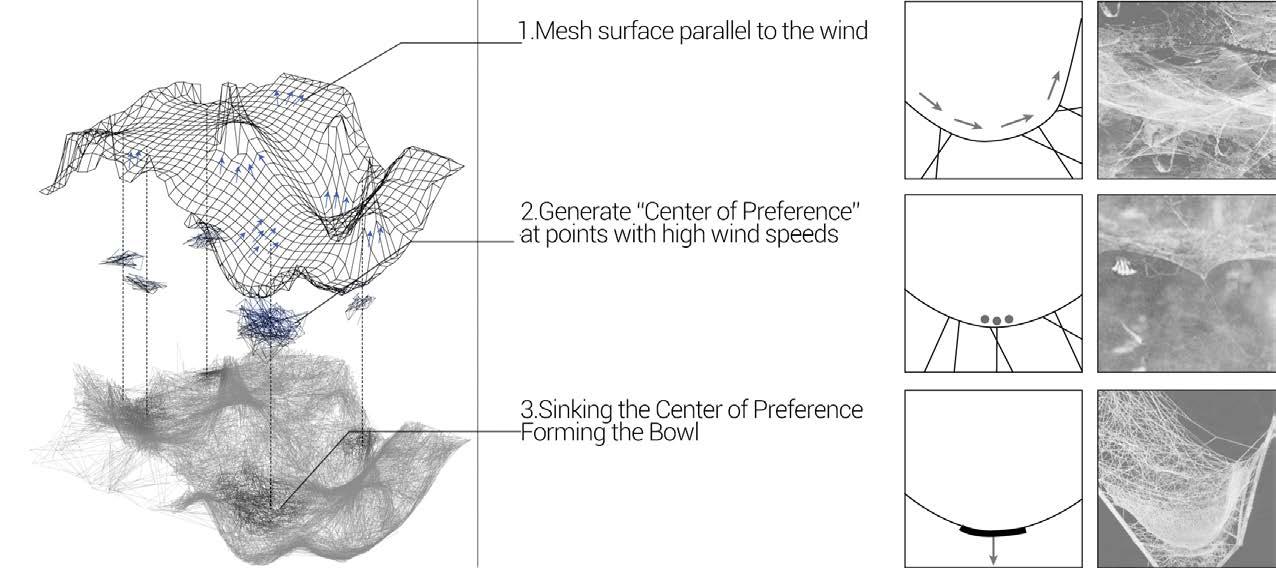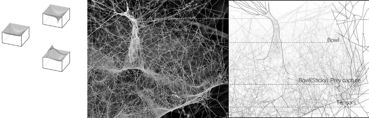 I chose Linyphiidae's sheet web as a research entry point. This spider is random but interacts strongly with the environment.The structure is categorized into support, bowl and traction points, and the type of filament is categorized into viscous (trapping), non-viscous, and structural filaments.