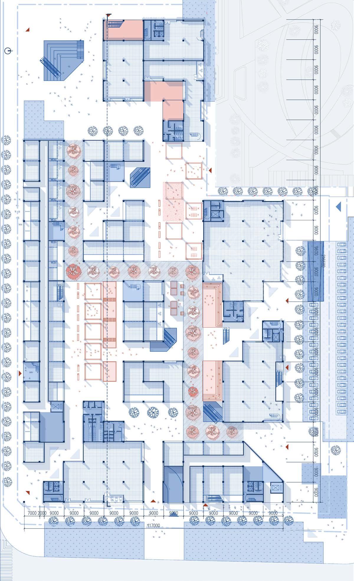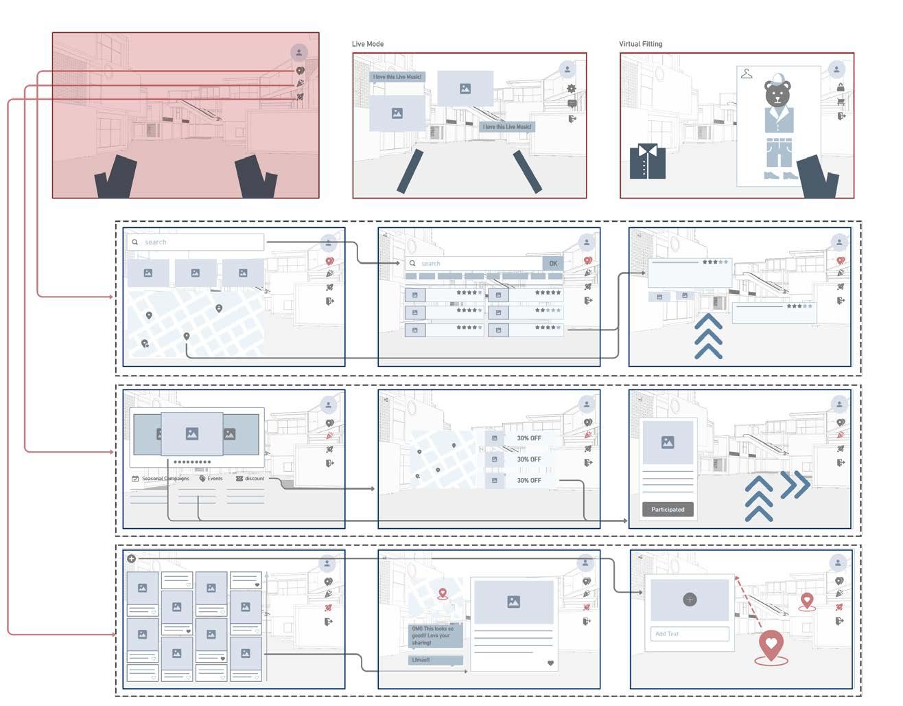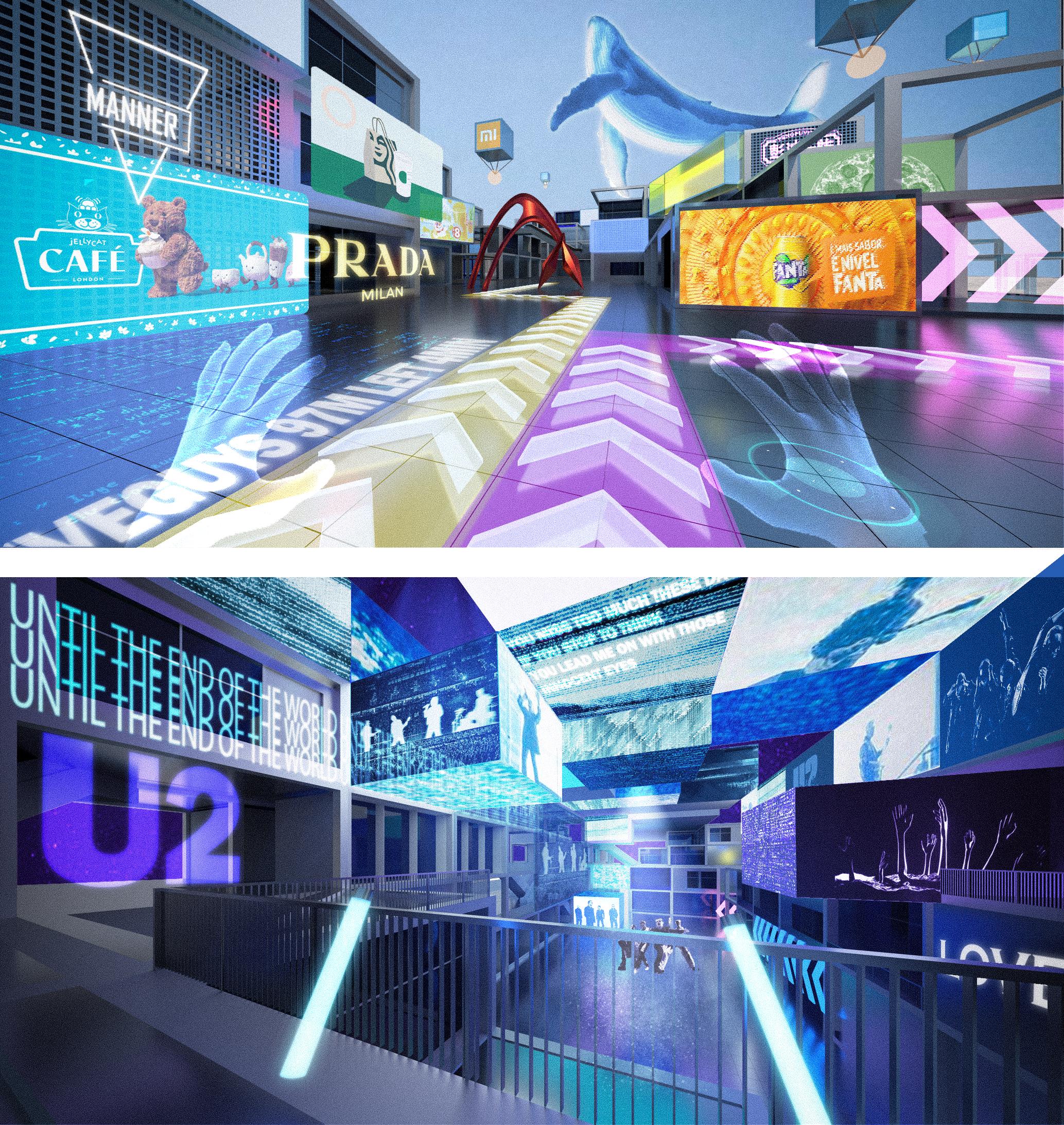 (MR) technology to create a consumption and social space that caters to both physical and virtual needs. The design enables the commercial street to dynamically adapt to realtime data (such as crowd flow and activity heatmaps) while leveraging virtual interfaces to provide immersive interactive experiences, blending commerce, social engagement, and entertainment.