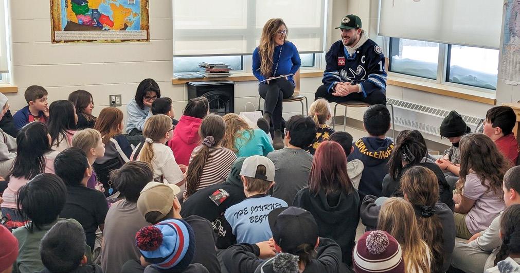 Presented by McNally Robinson, Moose players visited 12 classrooms for storytime, Q&As, autographs, and a reading gift package for all students in celebration of February’s “I love to Read Month”.