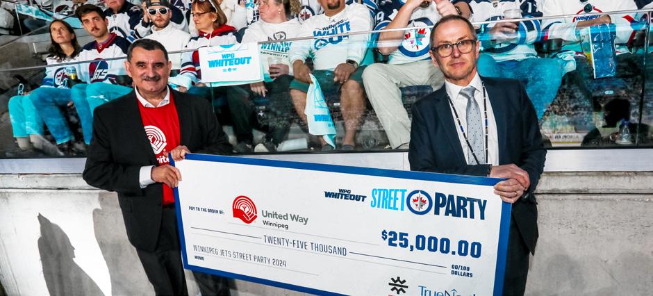 The 2023-24 season marked the sixth time in seven seasons that the Winnipeg Jets made the post-season, which meant the return of the Winnipeg Whiteout Street Parties, made world-famous by fans. True North again partnered with United Way Winnipeg to direct half of Street Party ticket proceeds to agencies whose work is centred on supporting those in our city experiencing homelessness, addictions and mental health challenges. Donations from three Street Parties and three neighbouring Party in the Plaza events hosted by Hargrave St. Market were topped up by True North to result in a $100,000 donation, equally disbursed to N'Dinawemak – Our Relatives’ Place, Main Street Project, Siloam Mission, and the Bruce Oake Recovery Centre.