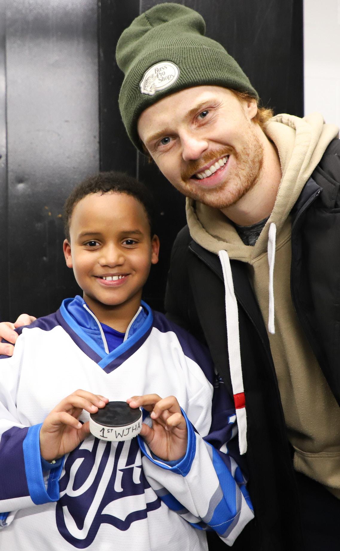 It was a year to remember for several minor hockey players who had the unique experience of being coached and mentored by Jets and Moose players, and some of their partners, over the course of the season. Josh and Margot Morrissey; Mason and Sydney Appleton and Tyrel Bauer; Adam Lowry and Vladislav Namestnikov; Nino Niederreiter; Morgan Barron and Dylan Samberg; Mark Scheifele and Cole Perfetti; and Neil Pionk, Gabriel Vilardi and Megan Rodgers (Vilardi’s girlfriend) partnered to each adopt a Winnipeg Jets Hockey Academy minor team, attending practices and games between their own hockey and travel schedule.