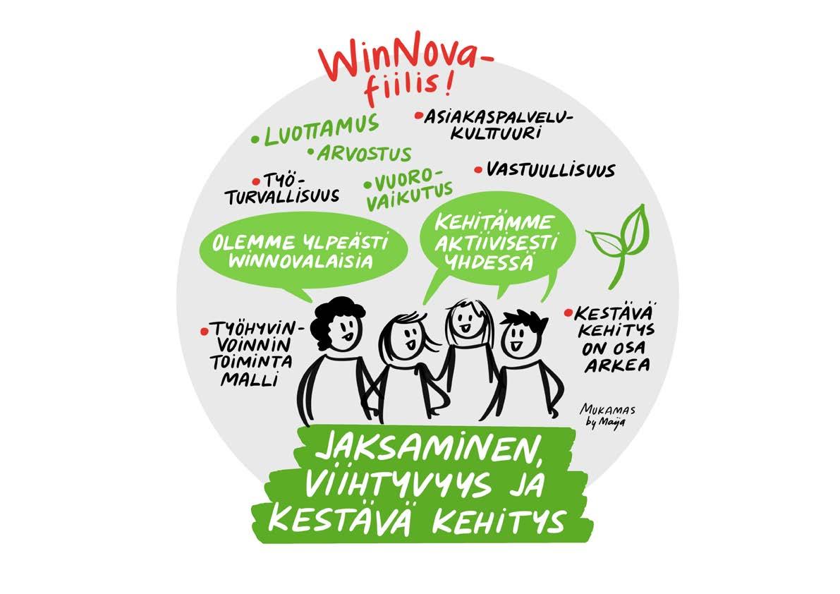 "Toimintatapamme koskettaa jokaista yhteisömme jäsentä WinNovassa. Jokaisella meistä on tärkeä rooli toimivan, hyvän ja vastuullisen oppilaitosyhteisön sekä vuorovaikutteisen organisaatiokulttuurin rakentamisessa. Vastaamme jokainen omalta osaltamme näiden toimintatapojen noudattamisesta."