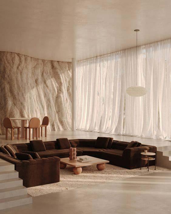 Minimalist with natural tones . Addition of different textures to achieve a good balance.