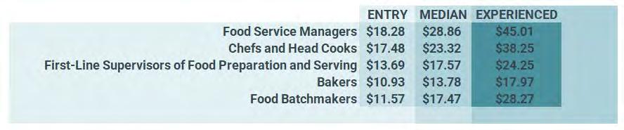 Culinary Arts students learn the fundamentals of cookery and with additional training and experience, become able to create gourmet foods and artistic presentations. Many culinary occupations carry skillsets transferable across hospitality industries. Occupations encompassed in culinary arts include Firstline Supervisors of Food Preparation and Serving Workers, Food Service Managers, Chefs and Head Cooks, Bakers, and Food Batchmakers.