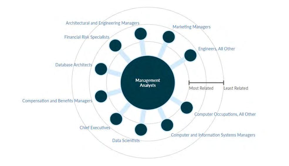 Three of the occupations analyzed here typically require a bachelor’s degree for entry, and two require a high school diploma and on-the-job training according to BLS data. In addition, 71.8% of postings require a college education, and a Master of Business Administration (MBA) is an extremely common posted credential. Of the jobs posting experience requirements, nearly all require five years or fewer.
