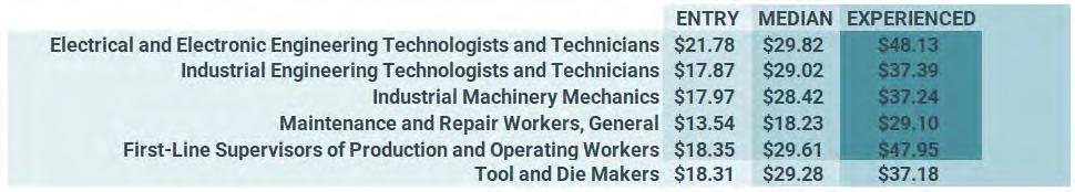 General Maintenance and Repair Worker positions are often available to entry-level workers. Working in maintenance can help provide hands-on learning experiences to build the skills necessary when seeking credentials to become an industrial machinery mechanic or tool and die maker. Salary approximations for advanced manufacturing occupations can range from $28,000 to over $101,000.