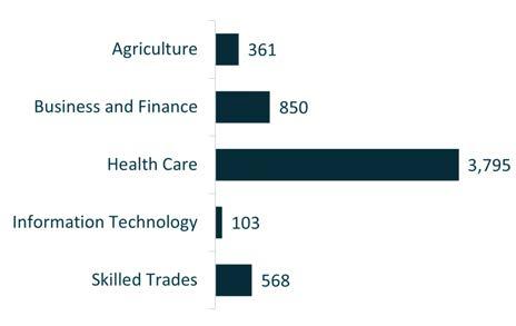 Registered Nurses were the highest in-demand Health Care occupation throughout the year, with 1,507 postings. Other top posted jobs include Medical Assistants (235 postings), Physical Therapists (221 postings), Nursing Assistants (203 postings), and Home Health and Personal Care Aides (184 postings). Top occupations in Health Care are available at many education levels, and employment for some roles, such as Home Health and Personal Care Aides, only require a High School diploma or equivalent, coupled with short to moderate-term on-the-job training.