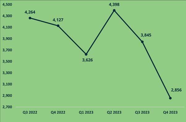 103,872 an increase of 3,161 workers (3.1 percent) from Q4 2022