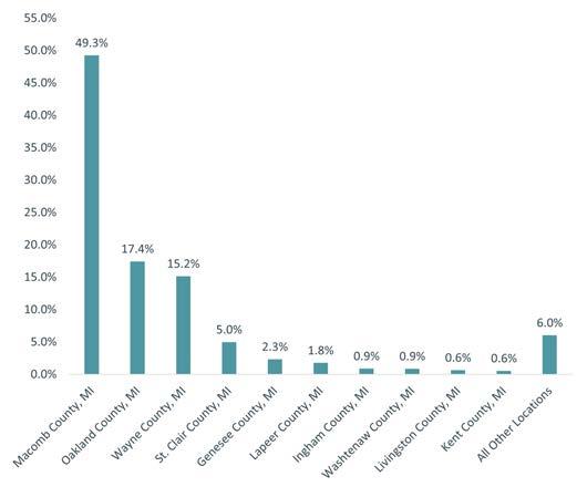 According to the most recent OnTheMap data set available from the Census Bureau, during 2021, the County's workforce consisted of 362,728 residents. There were 154,073 (42.5 percent) residents living and working within Macomb County, while the remaining 208,655 residents (57.5 percent) traveled outside of the County for work. There were 312,759 workers employed in the County during 2021. Of those, 158,686 workers (50.7 percent) lived outside of the County and commuted in. Based on this information, we can see that Macomb is a net exporter of jobs, with more workers leaving the area for employment than inwardly commuting, but it also has a high rate of both inbound and outbound commuting with nearby counties.
