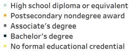 High School or GED: 28.8% Associate Degree: 18.8%