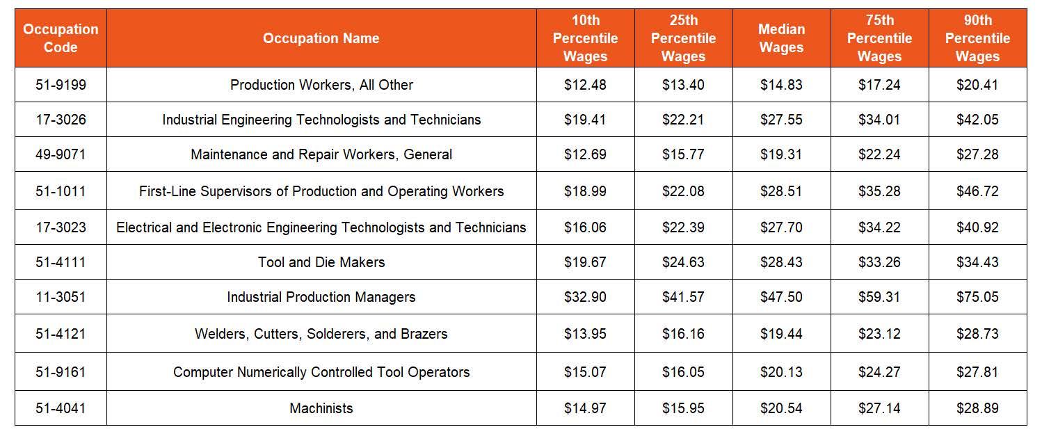 NOTE: Skilled trades related to construction and assembly are not included in this cluster, as the focus is on advanced manufacturing only.