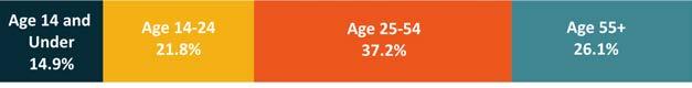Data: American Community Survey 5-Year Estimates | Analysis: Workforce Intelligence Network 50.0% Female 50.0% Male Population Race Demographics Population Age Demographics