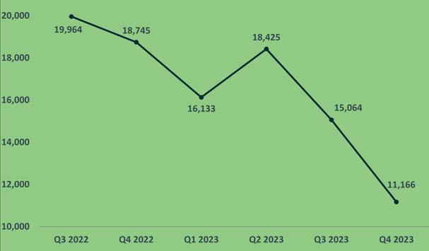 203,918 an increase of 13,028 workers (6.8 percent) since Q4 2022.