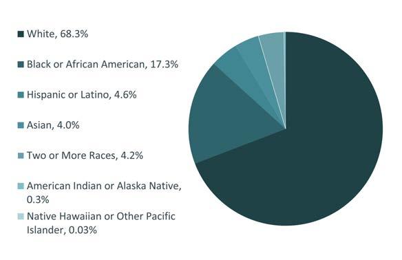 77.3% White | 13.1% Black or African-American | 4.7% Hispanic or Latino