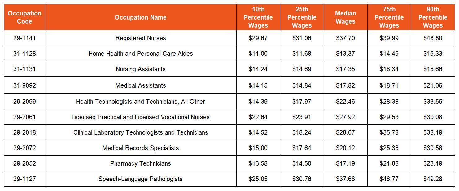 The WIN data and research team analyzes job posting data at the occupation level within eleven customized occupation groups built using specific Standard Occupational Classification (SOC) codes to provide more contextualized information. Occupation groups combine data for jobs with similar skillsets, educational attainment, and experience requirements, which provides a more in-depth snapshot of the current labor market when compared to traditional industry data based upon North American Industry Classification System (NAICS) codes. Occupation outlook sections utilize these metrics to identify and display the top in-demand jobs, entry-level requirements, and earning potential.
