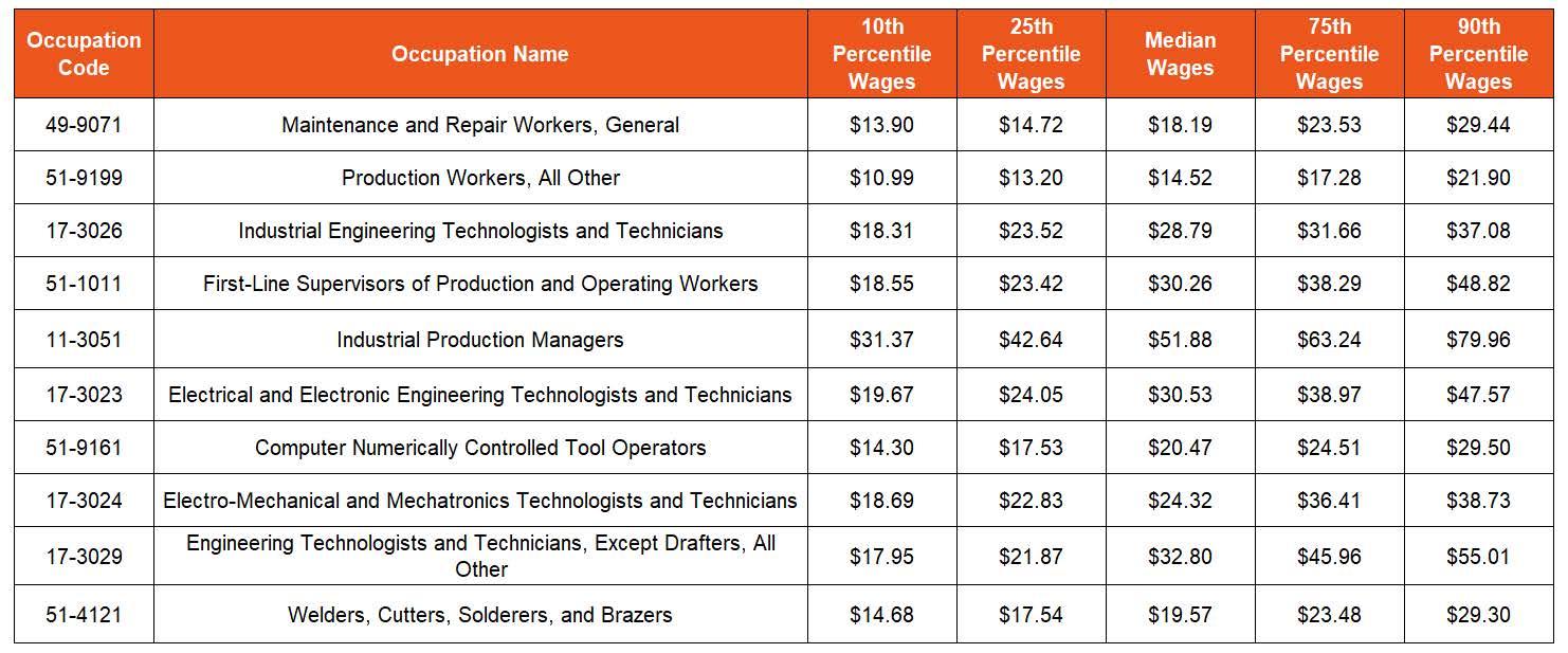 NOTE: Skilled trades related to construction and assembly are not included in this cluster, as the focus is on advanced manufacturing only.