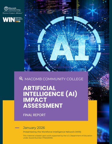 Employer demand for AI-related skills increased from approximately 05% of job postings in 2010 to 17% in 2024, representing a 240% increase (Galeano et al, 2025), with nearly 628,000 postings requiring at least one AI skill in 2024 alone (Galeano et al, 2025) This finding is further supported by data from the Macomb Community College service region, where job postings requiring AI-related skills increased from 05% in 2010 to 16% in 2024 and 20% in 2025 This data and associated chart are shown on page eleven While this increase mirrors the findings by Galeano et al. (2025), the data suggests that this region has even greater demand than the baseline comparison. AI-driven transformation spans both white-collar and blue-collar occupations, as roles built around clearly defined and formulaic procedures are particularly susceptible to automation. Across contexts ranging from operating theatre or modern farming operations, work reliant on standardized protocols can be more readily replicated by AI systems (Wong, 2024).