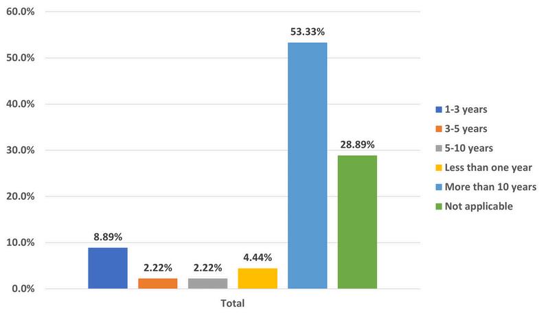 The distribution highlights a wide range of experience levels among the survey respondents. The majority of participants have over 10 years of working experience, representing 51.1 percent of the respondents. Additionally, 28.9 percent of participants have between 1 and 3 years of experience with their current employers. Participants with 3 to 5 years of experience constitute 11.1 percent, while the remaining 8.9 percent have between 5 and 10 years of experience. This diverse range of experience ensures a broad spectrum of insights and perspectives for the study.