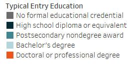 Heavy and Tractor-Trailer Truck Drivers is the top posted occupation for 2020, with 2,314 unique online job postings, requires a postsecondary nondegree award for entry, coupled with short-term on-the-job training. Registered Nurses and First-Line Supervisors of Retail Sales Workers round out the top three demanded occupations, with 1,102 postings and 625 postings respectively, requiring a bachelor’s degree and a high school diploma or equivalent respectively, for entry. All the other in-demand jobs require no formal education or a high school diploma or equivalent, coupled with short-term on-the-job training.